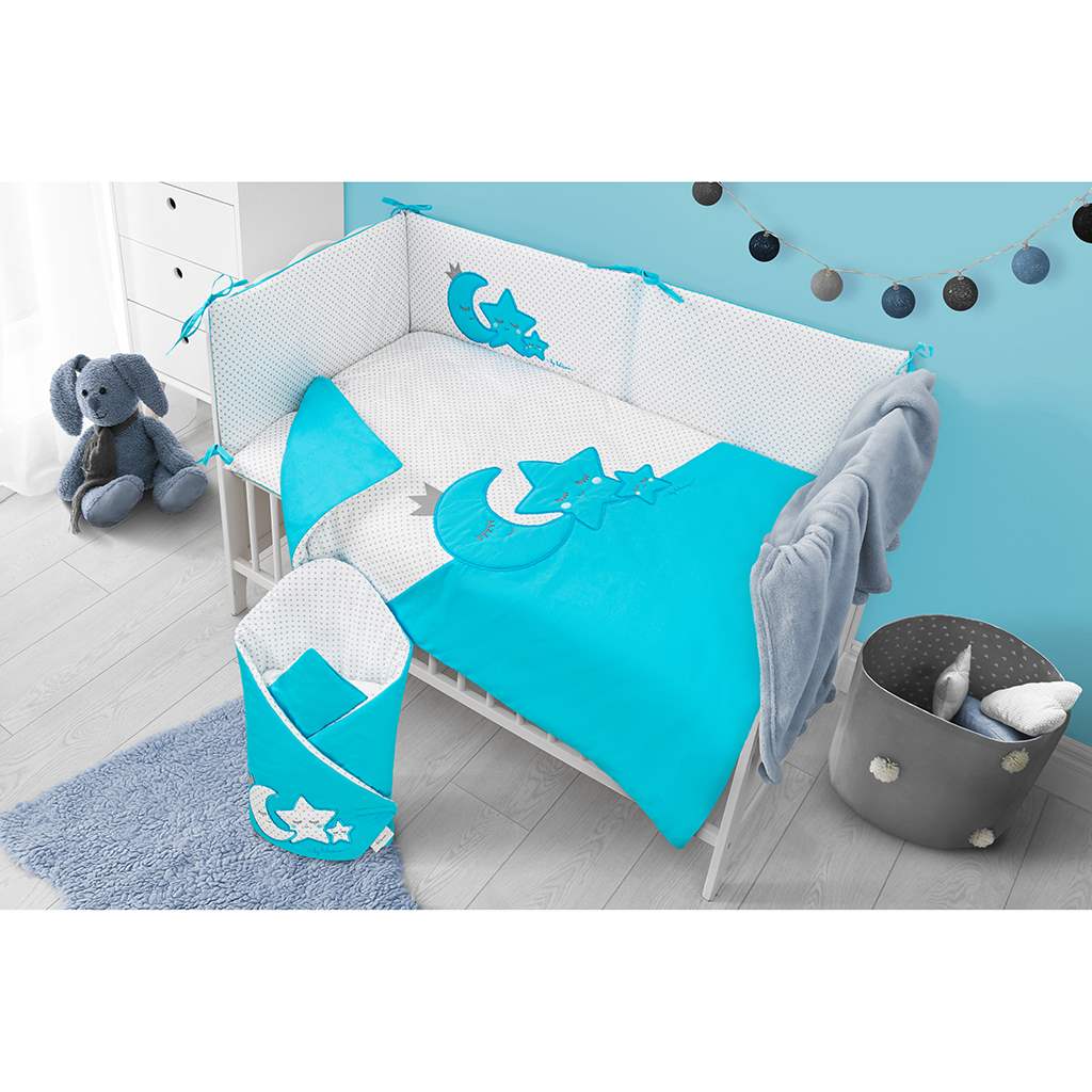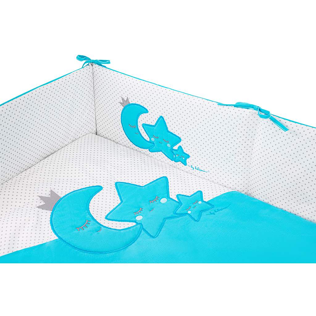 O frumoasă set de pat pentru copii din bumbac, format din 3 piese, Belisima Magic Stars pentru bebeluşi. Este fabricat dintr-un material moale şi plăcut. Setul include faţă de pernă aproximativ 40x60 cm, cearceaf pentru plapumă aproximativ 100x135 cm şi protecţie pentru margini de aproximativ 180 cm. Material: 100% bumbac.