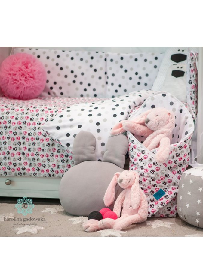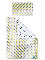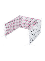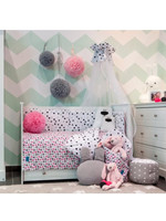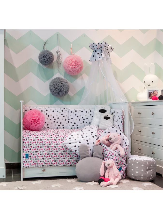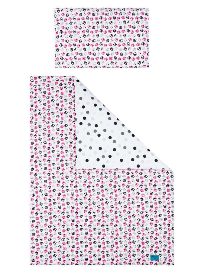 Set de pat din bumbac pentru copii, format din 6 piese, Belisima Koťátka pentru bebeluşi. Setul are o faţă complet imprimată cu buline şi cealaltă parte este complet imprimată cu imagini de pisicuţe. Este fabricat dintr-un material moale şi plăcut la atingere. Setul include o lenjerie pentru pernă de aproximativ 40x60 cm, lenjerie pentru pilota de aproximativ 100x135 cm, protecţie laterală de aproximativ 180 cm, şi umplutură: pernă, pilotă şi cerul de pat: 150x200 cm. Materialul este 100% bumbac.