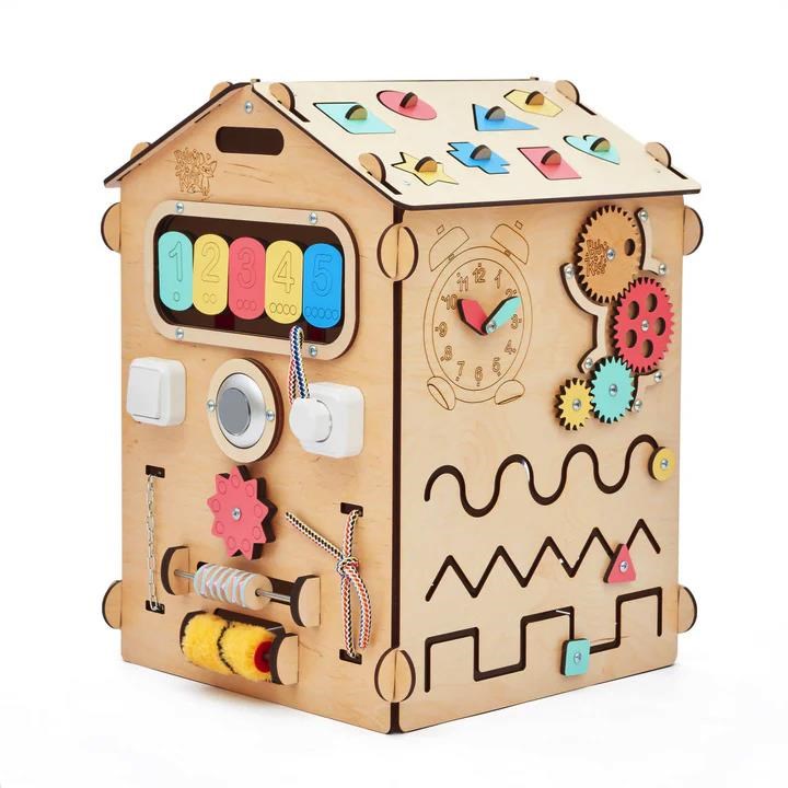 Pereții sunt echipați cu fermoare, ceas, lampă tactilă, arici, elemente motorice și butoane.