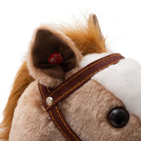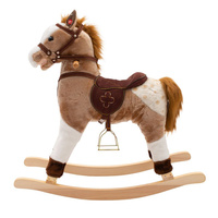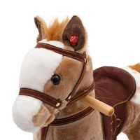 Frumosul cal de leagăn PlayTo a fost proiectat pentru copii care iubesc aventura. şaua confortabilă şi ergonomică oferă copilului tău confort şi siguranţă în timpul legănării fără griji. Barele de lemn stabile, frâiele, ştreangurile de călărie sau mânerele de lemn ajută copilul să menţină echilibrul. Barele de leagăn pot fi, de asemenea, uşor demontate. întregul cal este fabricat dintr-un material de pluş moale şi foarte plăcut la atingere. Apăsând urechile, calul se mişcă cu gura, chicoteşte vesel sau face zgomote de cal care tropăie. Bateriile se introduc într-un compartiment situat pe burtă. Jucăria ajută copilul să îşi dezvolte coordonarea mişcărilor şi stimulează imaginaţia acestuia.