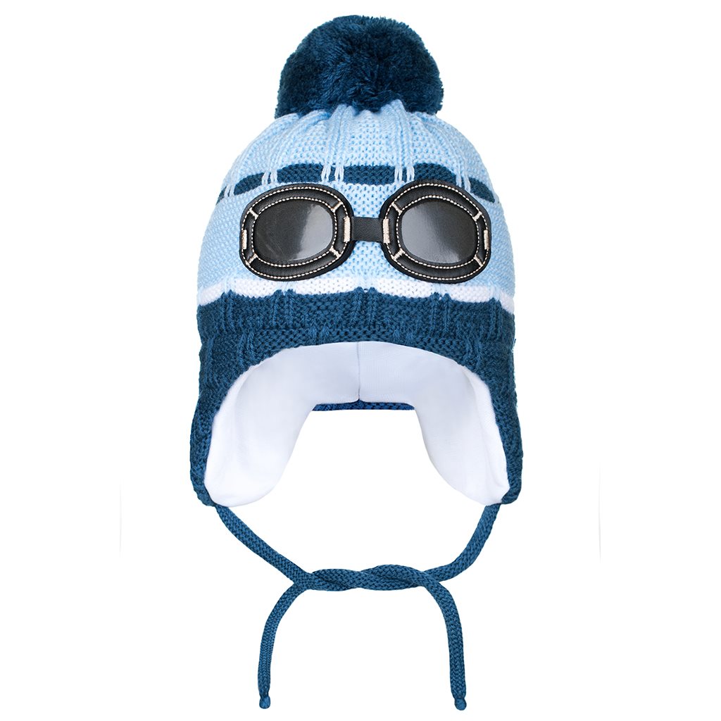 Minunată căciulă de iarnă tricotată New Baby. Căciula este decorată cu o frumoasă imagine cu ochelari. Are şireturi de legat, captuseala din bumbac, umplutură isosoft şi un pompon adorabil. Isosoft sunt fibrele special selectate care oferă o protecţie excelentă împotriva frigului şi un confort termic ideal. Compoziţia 100% bumbac. Căciula este potrivita pentru zilele de iarnă. Ideal pentru copii mici şi mari. Căciula este formată astfel încât să acopere urechile. Circumferinţa în jurul capului 44-48 cm.