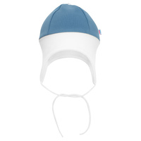 O frumoasă căciuliţă de la brandul ceh New Baby The Best. Este fabricată dintr-un material confortabil de trening, în care bebeluşul vostru se va simţi foarte confortabil. Are o margine elastică, care nu strânge şi se va potrivi bine pe capul bebeluşului. Este frumos modelată pe urechi şi se leagă cu şireturi. Compoziţie 98% bumbac, 2% elastan.