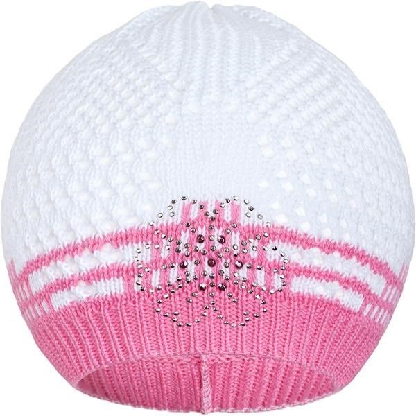Căciulă tricotată de primăvară New Baby. Căciula este decorată cu o imagine a unei flori, care este împodobită cu pietre sclipitoare. Căciula este cusută dintr-un material respirabil, deci este potrivită pentru zilele de primăvară şi toamnă. Ideal pentru copiii mici şi mari. Compoziţie: 100% bumbac. Materialul este elastic. Circumferinţa capului este de aproximativ 40-50 cm.