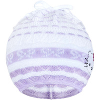 Căciulă-şal tricotată de primăvară New Baby. Căciula este decorată cu un desen de pisică cu pietre strălucitoare. Căciula este cusută dintr-un material respirabil, de aceea este potrivită pentru zilele de primăvară şi toamnă. Ideal pentru domnişoare mici şi mari. Compoziţie: 100% bumbac. Materialul este elastic. Circumferinţa în jurul capului este de aproximativ 40-50 cm.