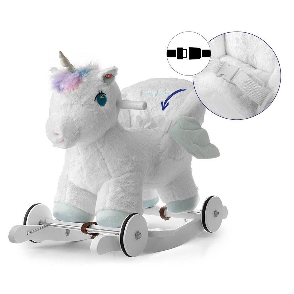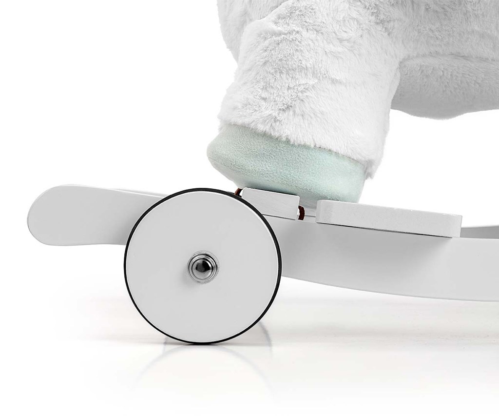 Calul de lemn moale Polly a fost proiectat pentru cei mai mici copii (12m+), pentru care caii de lemn tradiționali sunt prea mari. Locul de șezut confortabil, ergonomic, în formă de fotoliu și centurile ajustabile asigură confortul și siguranța în timpul legănatului și mutării copilului fără griji.