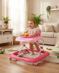 Mersătorul multimedia Baby Mix are roţi de silicon. Mersătorul este echipat cu un scaun ergonomic confortabil care asigură poziţia corectă a coloanei vertebrale. Panoul multimedia include diverse efecte de lumina, un volan care poate fi rotit şi care are claxon, butoane pentru redarea melodiilor şi două lumini. Mersătorul frumos cu jucării va încânta micii exploratori şi le permite să se joace mai mult timp. Mersătorul are un sistem special de prevenire a răsturnării, asigurând confortul şi siguranţa copilului dumneavoastră.