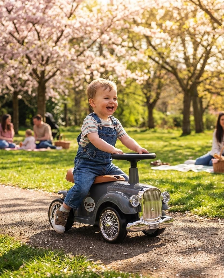Tricicleta pentru copii Retro invită micii călători la o plimbare retro. Atractivă prin culorile sale plăcute ochiului, este bogat echipată. Această mașinuță dispune de un volan cu sunet și un scaun modelat. Va oferi copilului dumneavoastră distracție minunată la volan și va dezvolta simțul echilibrului și abilitățile motorii generale. Mașinuța are o construcție ușoară din plastic și forme ergonomice. Volanul rotativ al tricicletei Retro permite manevre dificile atât acasă, cât și în plimbări. Roțile acestui vehicul frumos sunt fabricate din spumă EVA moale. Tricicleta Retro poate fi folosită de copilul dumneavoastră ca prim vehicul adevărat cu volan și claxon, dar și ca un cărucior cu un spațiu de depozitare deschis pentru jucării (o mică valiză), imitând un rezervor de combustibil în partea din spate a vehiculului și cu partea din față a mașinii - o grilă de culoare argintie. Vehiculul Royce este destinat tuturor copiilor care pot sta singuri. Poate fi folosit atât în interior, cât și în exterior și va face timpul petrecut pe plimbare mai plăcut pentru copilul dumneavoastră.
