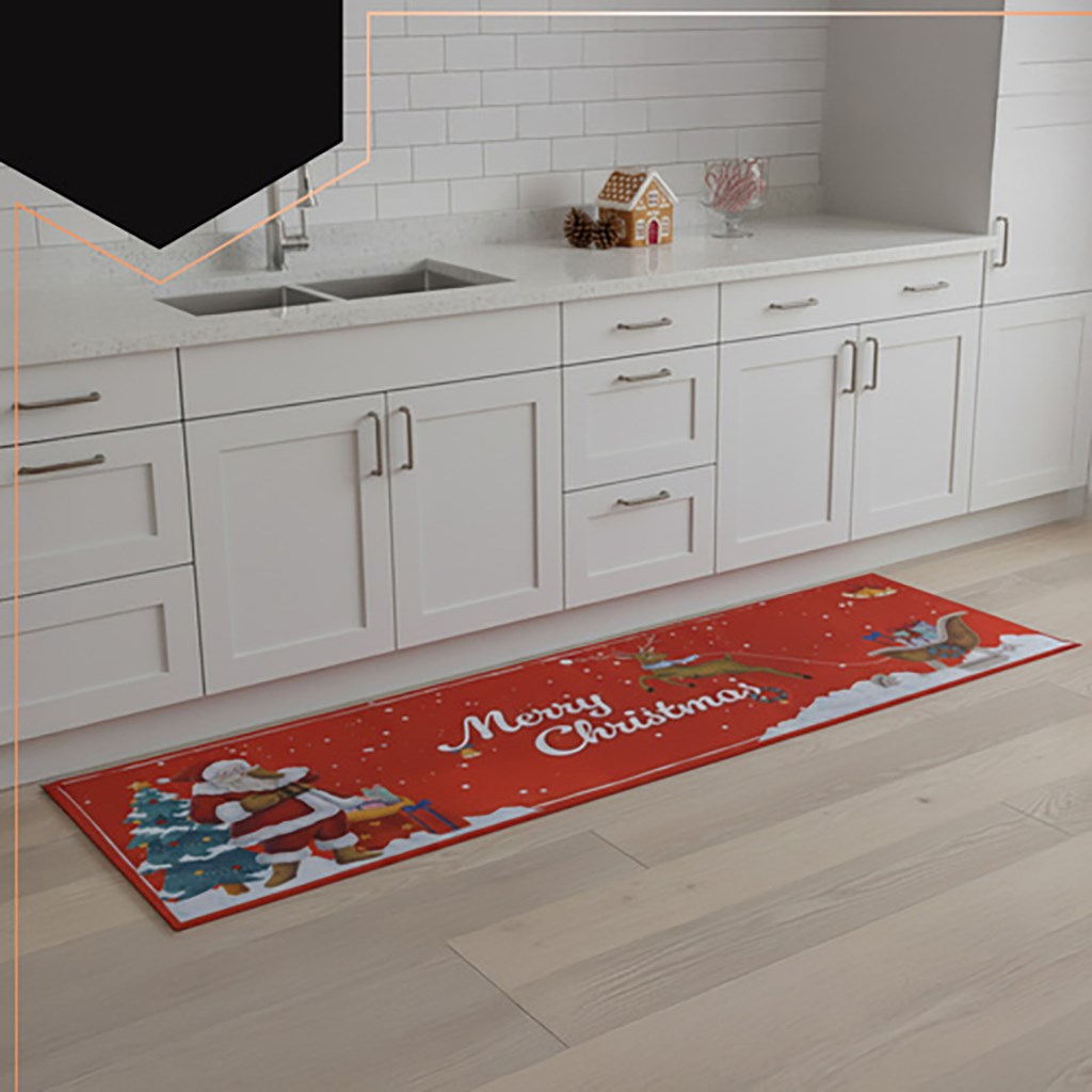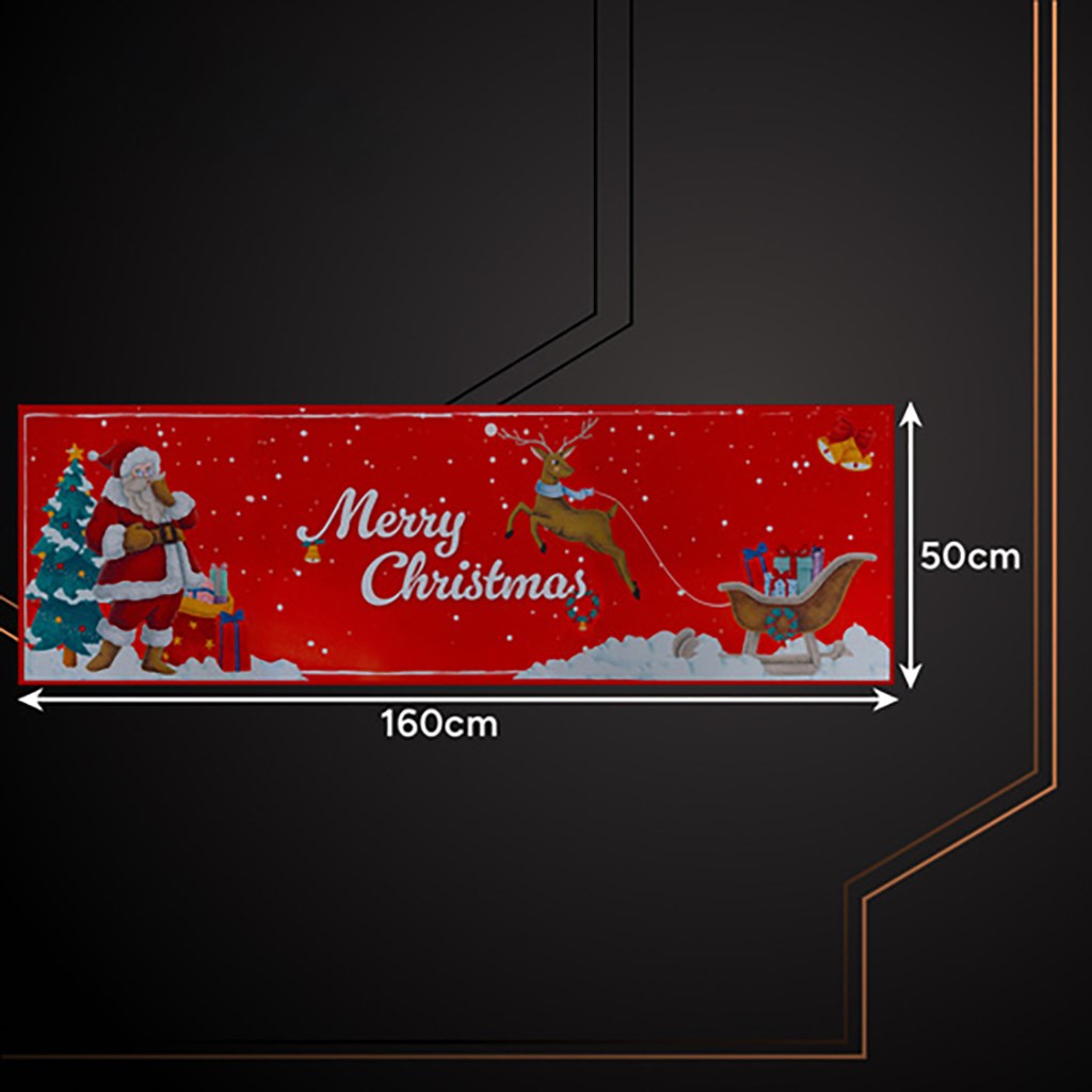 Covor de Crăciun 160×50 – covor moale anti-derapant pentru bucătărie și antreu, covor decorativ cu uscare rapidă, având inscripția „Crăciun Fericit”