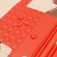 Covoraşul are dimensiuni impresionante de 200x150 cm, dar odată pliat, are doar 70x40x10 cm şi îl veţi putea ambala uşor într-o geantă practică, în care este livrat covorul. Este certificat conform normei EN71 ca jucărie, îndeplinind astfel cerinţe mai stricte decât unele covoare concurente în ceea ce priveşte siguranţa, compoziţia materialului şi chimică.
