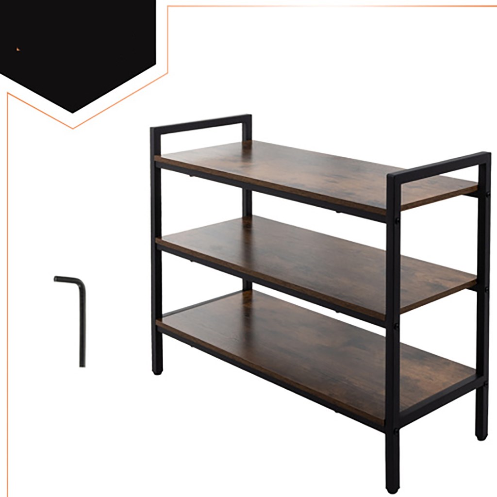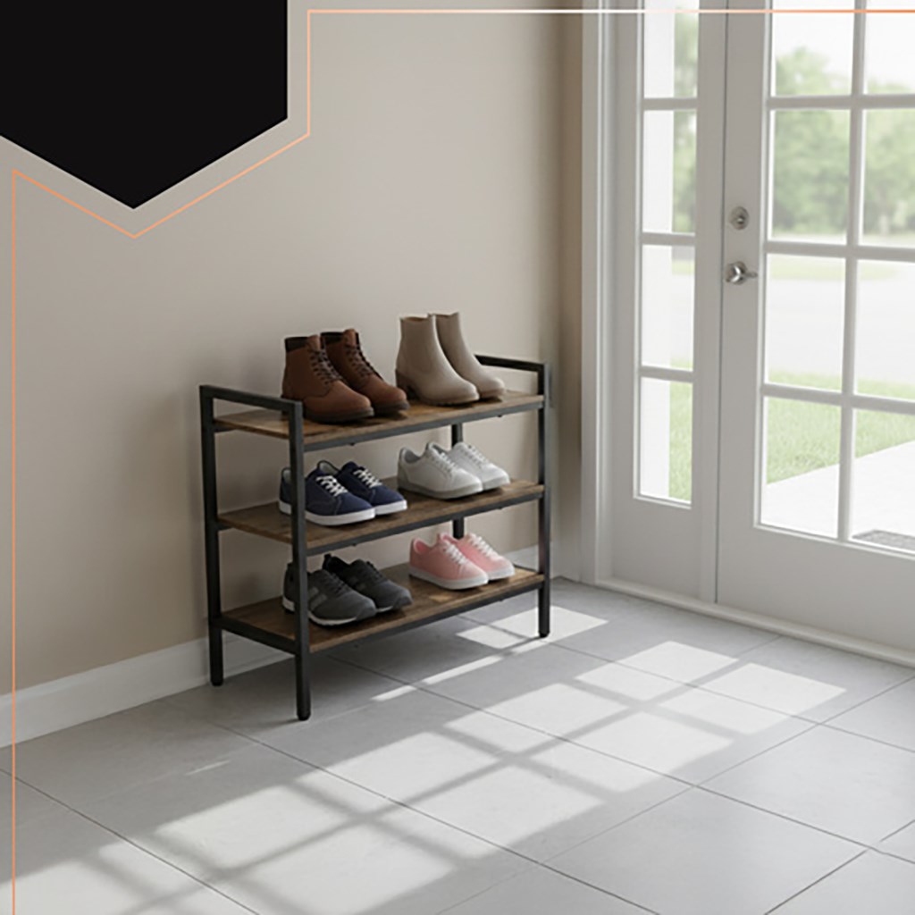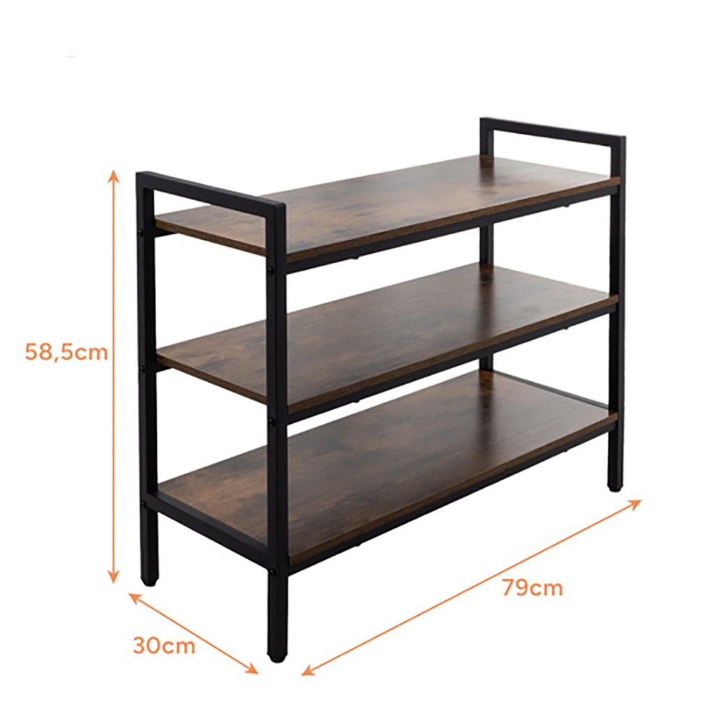 Această răchită combină funcționalitatea, durabilitatea și stilul elegant loft. Cele trei rafturi rezistente pot susține pantofii și accesoriile întregii familii, în timp ce dimensiunile compacte permit amplasarea acesteia chiar și în holuri mai mici. Structura robustă din oțel și rafturile din lemn de culoare maro cald aduc armonie, confort și un aspect atemporal în casa dumneavoastră.