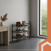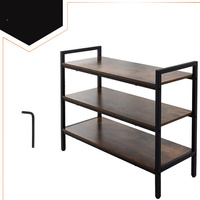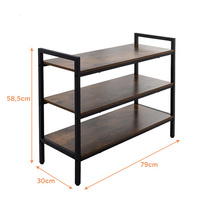 Răchita cu 3 niveluri – organizer metalic cu rafturi din lemn – suport stabil pentru încălțăminte și accesorii – design modern loft – capacitate de suport de 30 kg pe raft