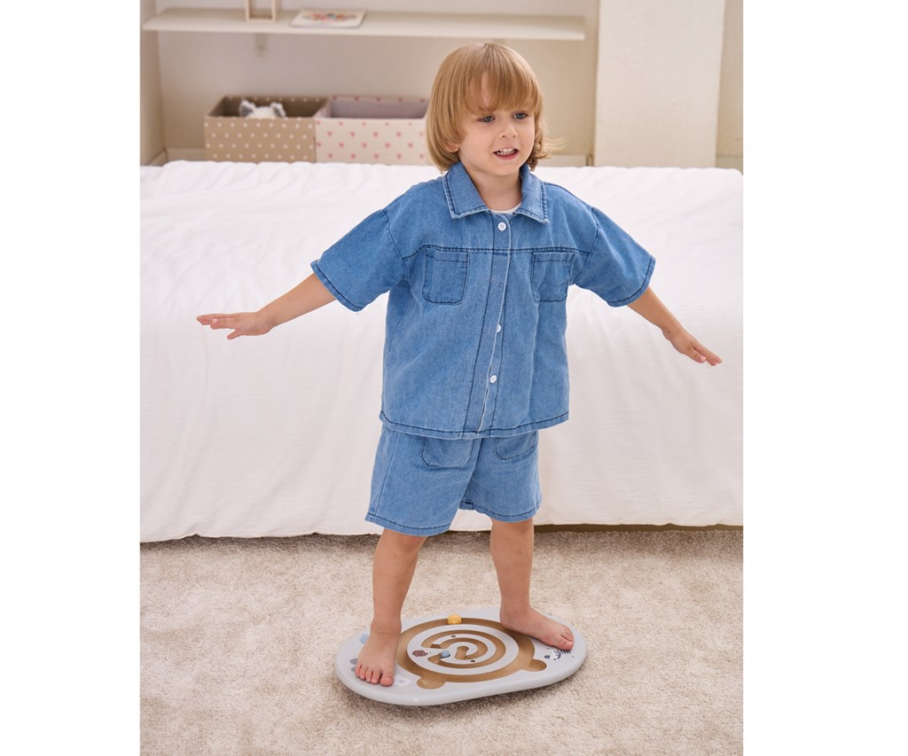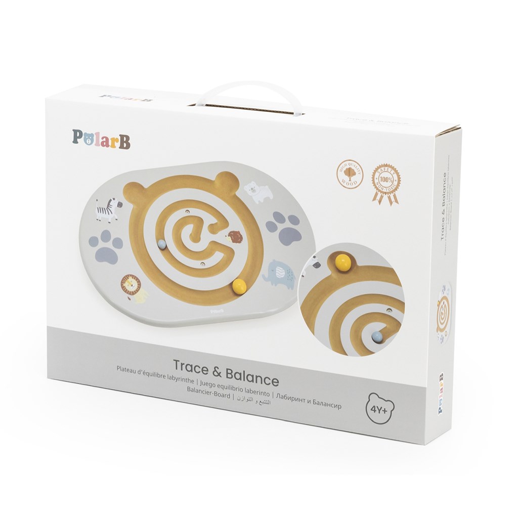 Labirintul echilibrant este o jucărie ideală pentru copiii de la 4 ani, care susține dezvoltarea echilibrului, coordonării motorii și concentrației. Setul conține o placă de echilibru cu un labirint scobit în formă de ursuleț și două bile din lemn. Sarcina copilului este de a mișca bila pe traseu prin echilibrare, antrenând astfel în mod jucăuș echilibrul și controlul corpului.