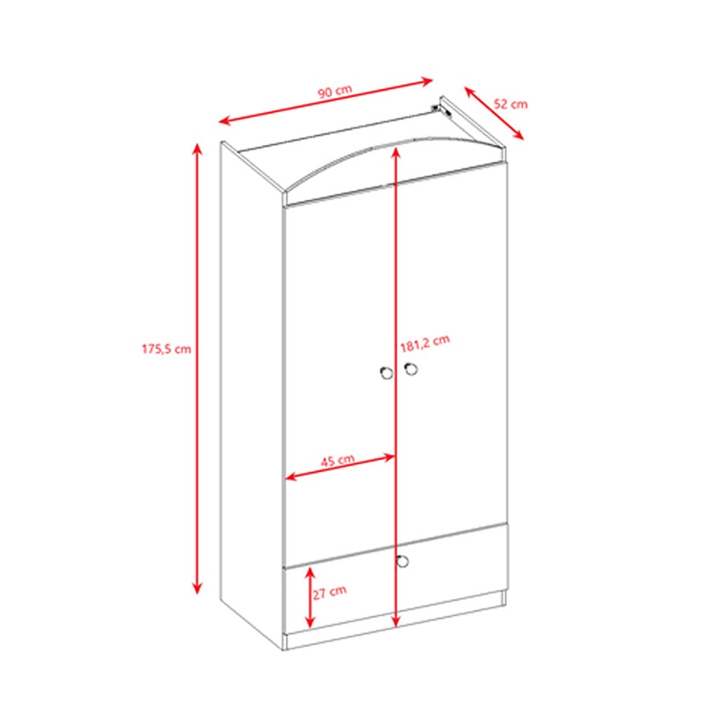 Șifonierul are două uși și este împărțit în două părți. O jumătate conține o bară pentru agățat haine, în timp ce cealaltă are 3 polițe cu lățimea de 40,2 cm, având o capacitate maximă de 5 kg. În partea de jos a șifonierului se află 1 sertar spațios cu lățimea de 80,4 cm și adâncimea de 43,2 cm.