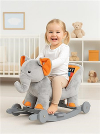 Elefantul balansoar excepţional de frumos cu roti PlayTo a fost proiectat pentru copii care iubesc aventura. Scaunul confortabil şi ergonomic cu spătar oferă copilului dumneavoastră confort şi siguranţă în timpul balansoarelor fără griji. Barele de lemn solide şi mânerele ajută copilul să-şi menţină echilibrul. Barele de balansoar pot fi, de asemenea, uşor deşurubate. Prin răsturnarea mecanismului simplu pe bare, veţi scoate roţile, transformând într-o secundă jucăria de balans într-un elefant de plimbare. întreaga jucărie este făcută dintr-un material pluşat moale şi foarte plăcut la atingere. Apăsând urechea, elefantul va cânta un cântec vesel. Bateriile sunt deja incluse în elefant. Jucăria ajută copilul să dezvolte coordonarea mişcărilor şi stimulează imaginaţia sa.