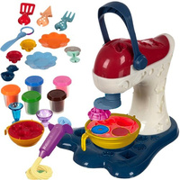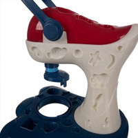 MIXER + SERINGĂ – setul include un mixer care se rotește prin apăsarea unui levier, creând stampile pentru fursecuri sau brioșe. Nu este nevoie de o forță mare, așa că orice copil se poate descurca cu el. De asemenea, include o seringă pentru a extruda aluatul din masa de modelat.