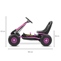 Marele kart de curse sportiv Thor a fost proiectat pentru şoferi şi fani ai vitezei. Construcţia din metal uşor cu capace din plastic în stil sportiv aduce un plus de stil fiecărui mic şofer. Confortul este asigurat de scaunul sportiv cu reglare a distanţei faţă de volan. Roţile mari umflate asigură confort şi plăcere în timpul călătoriei pe orice suprafaţă. Kartul are transmisie pe lanţ cu posibilitatea deconectării tracţiunii - funcţia ""frâna în liber"" şi frână manuală pe puntea spate. Pedalierul se remarcă printr-un design sportiv şi o calitate înaltă de prelucrare.