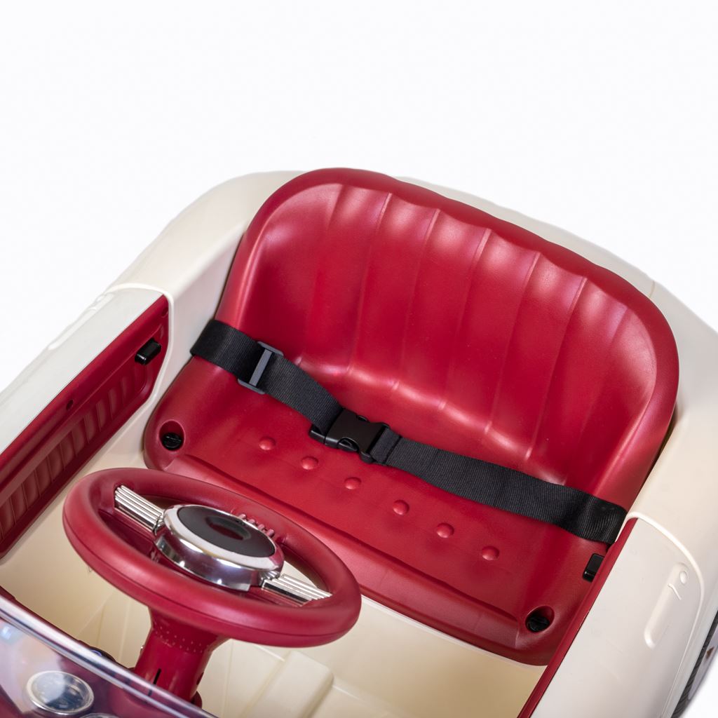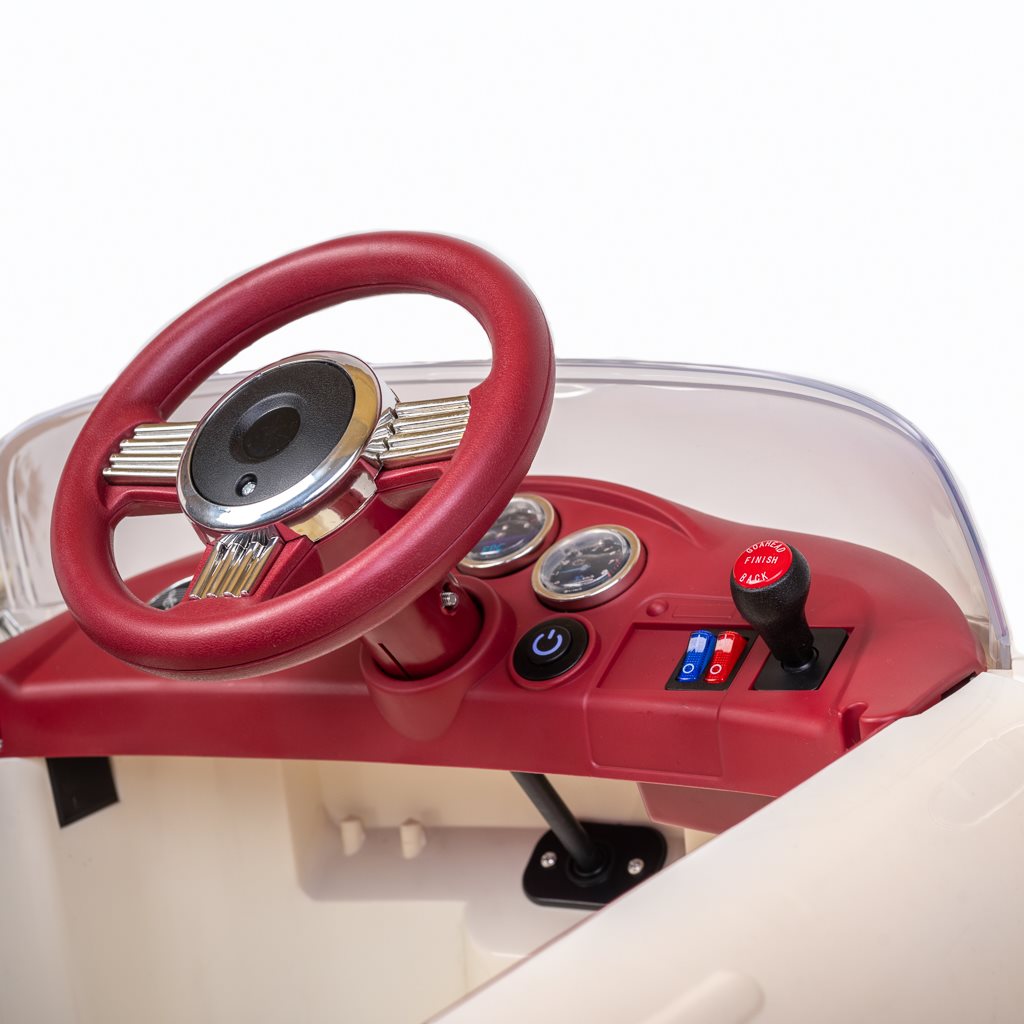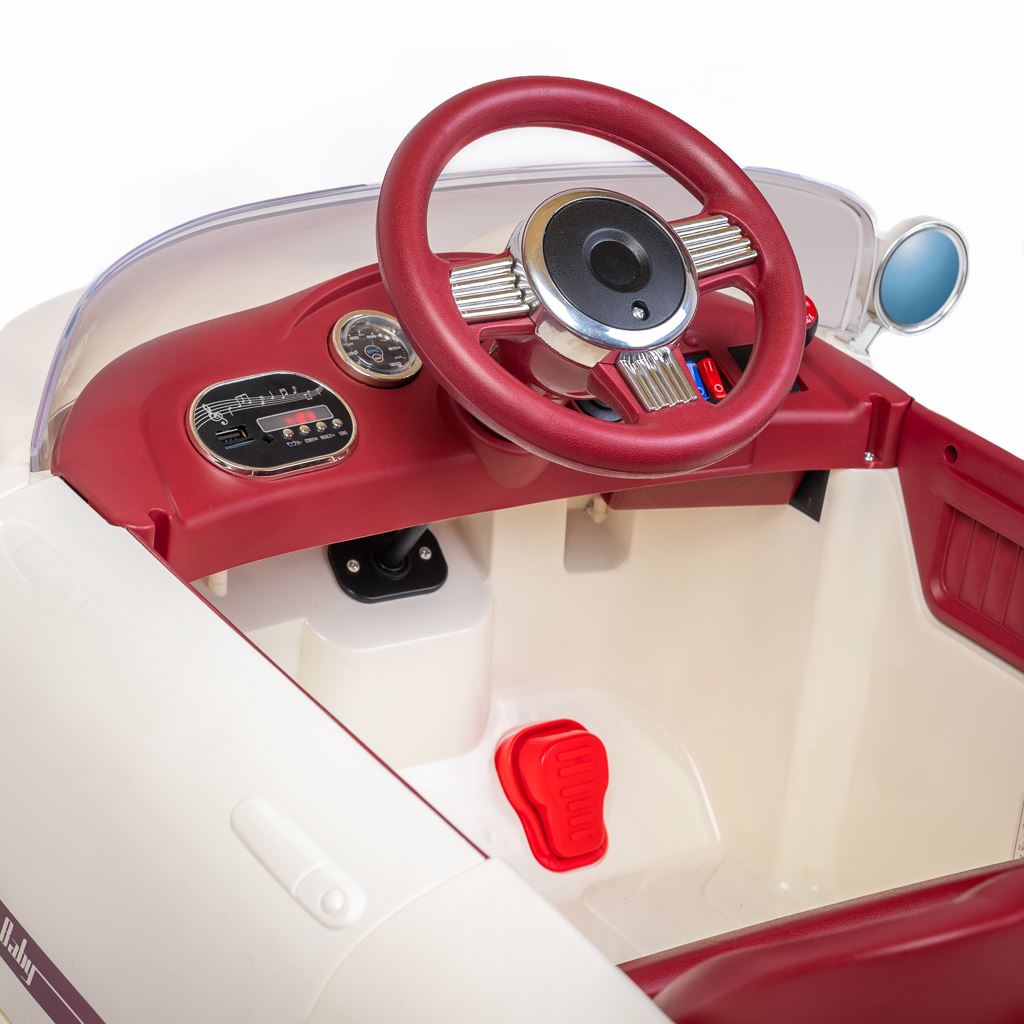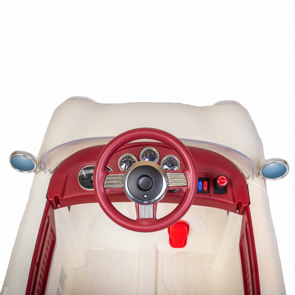 Maşina electrică pentru copii Retro Pearl White nu aduce doar bucurie şi distracţie, ci dezvoltă şi imaginaţia şi abilităţile motorii ale copiilor. Datorită muzicii şi poveştilor înregistrate în prealabil, adaugă o altă dimensiune magică acestei aventuri.