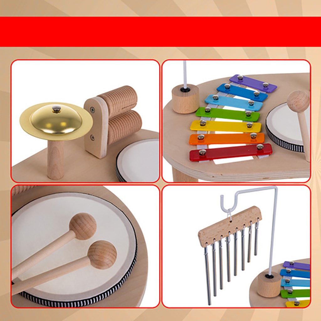 Masă educativă din lemn „Perkuse” – senzorială Montessori cu zornăitoare, tobe și shakers pentru copii – dezvoltare muzicală și senzorială pentru cei mici