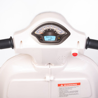 în plus, această Vespa pentru copii oferă şi mai multă distracţie! Datorită muzicii integrate, copilul dumneavoastră se va bucura de melodii ritmice în timpul plimbărilor, adăugând aventurii încă o dimensiune. Lumini LED frontale luminoase nu doar că măresc siguranţa, dar de asemenea oferă vehiculului un aspect autentic de Vespa. Copilul dumneavoastră nu doar că va conduce cu eleganţă, ci şi cu un stil distinct şi în mod distractiv!