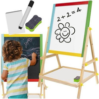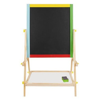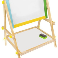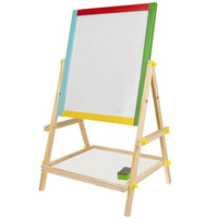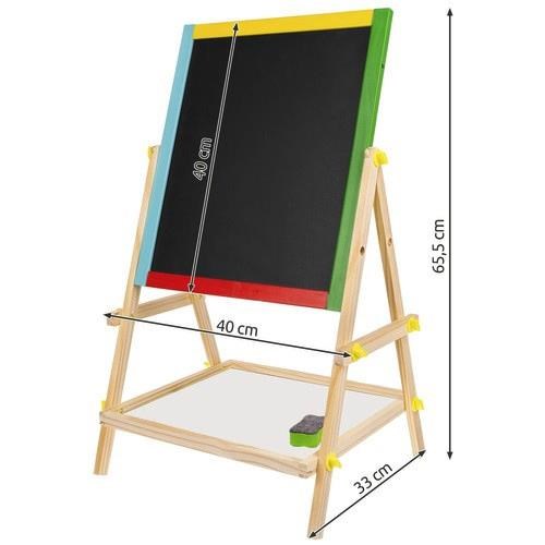 Dublă față – două suprafețe de lucru diferite: partea neagră pentru desen cu cretă și partea albă pentru scriere cu markere, copiii pot folosi diferite tehnici creative și astfel să își dezvolte creativitatea și abilitățile de joc și învățare.