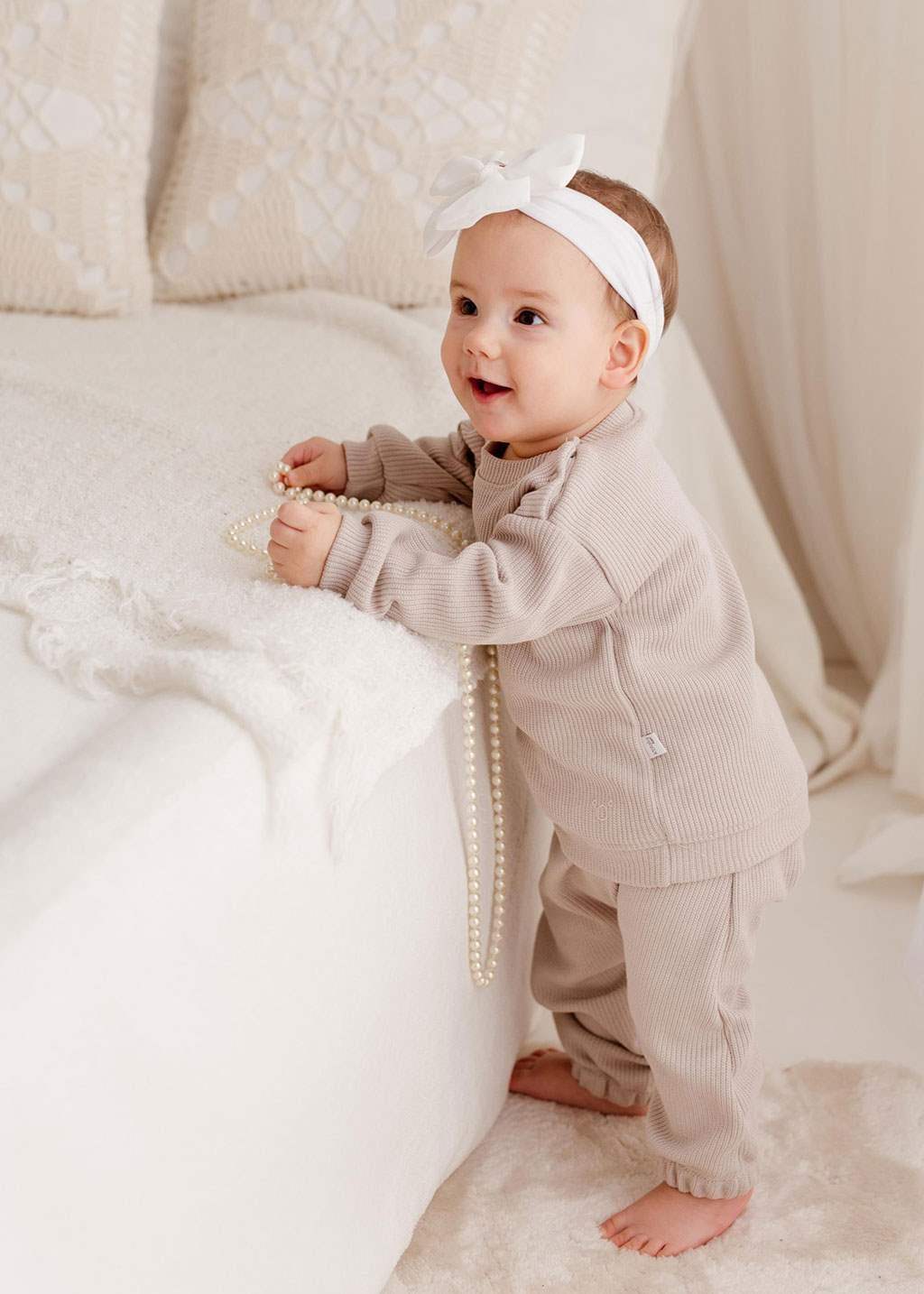 Stilizatele pantaloni de bumbac Koala Pure au talia şi marginile de la picioare cu o bordură largă cu elastic. Punem accentul pe calitate, aşa că datorită materialului plăcut, moale şi de înaltă calitate, bebeluşul dvs. se va simţi foarte confortabil. Compoziţie: 95% bumbac, 5% elastan.