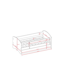 Patul individual cu barieră este fabricat din MDF de calitate, cu o grosime de 18 mm. Este disponibil în mai multe dimensiuni și variante de culori. Motivele de poveste asigură o gamă largă de opțiuni și posibilități de personalizare.