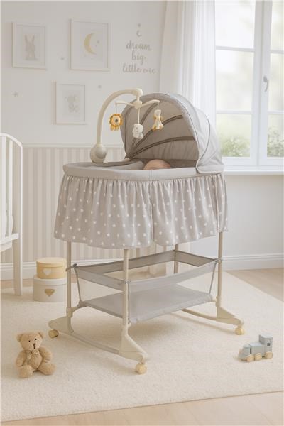Pătuţul multifuncţional pentru copii New Baby este alegerea ideală atât pentru copii, cât şi pentru părinţi, pentru care funcţionalitatea şi siguranţa sunt esenţiale. Acest produs poate fi folosit atât ca un pătuţ, cât şi ca o leagăn. Mobilitatea sa oferă un confort uriaş, deoarece copilul va fi întotdeauna aproape de părinţii săi. Coşul practic vă permite să aveţi totul la îndemână şi să reacţionaţi la timp la nevoile bebeluşului, fără a fi nevoie să vă îndepărtaţi de el. Husa leagănului este făcută dintr-un material respirabil şi plăcut la atingere, care poate fi uşor de îndepărtat şi spălat. Caruselul cu animale colorate este echipat cu o lumină de noapte, un modul muzical cu 8 melodii şi o funcţie de vibraţii delicate cu posibilitatea de a schimba intensitatea lor. Este alimentat cu 3 baterii AA LR6-1,5 V (nu sunt incluse). Una dintre părţile pătuţului poate fi desfăcută, ceea ce veţi aprecia în timpul îngrijirii zilnice şi deseori noaptea a bebeluşului.