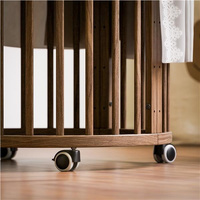 Patul poate fi folosit și ca împrejmuire. Absența colțurilor ajută copilul să învețe să se ridice și să se târască.