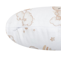 Perna de alăptare New Baby pentru așezarea confortabilă a bebelușului în timpul alăptării. Protejează coloana vertebrală a mamei împotriva suprasolicitării și previne durerile de spate. Material: parte superioară - 100% bumbac, umplutură - 100% poliester. Lungimea perimetrală este de aproximativ 125 cm, diametrul este de aproximativ 16 cm. Perna are o husă detașabilă. Aceste produse sunt sigure, deoarece: - bumbacul natural nu provoacă iritații și zgârieturi, deoarece nu conține formaldehidă și alte elemente dăunătoare bebelușului - nu își pierde culoarea și nu pătează hainele - modelele oferite sunt plăcute la vedere și au culori liniștitoare - nu au fost folosite nici un tip de nasturi sau alte părți din plastic sau oțel care pot fi periculoase pentru copilul dumneavoastră - materialul folosit pentru umplutură este 100% hipoalergenic, ceea ce înseamnă că niciun microorganism sau mucegai nu se poate răspândi în fibrele sale
