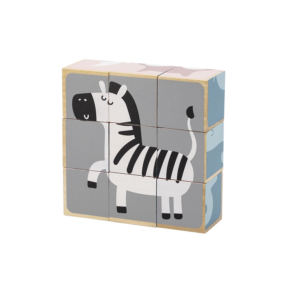 Dezvoltați abilitățile copilului dumneavoastră cu acest joc clasic din blocuri de lemn. Din cele 9 blocuri, copilul va crea pe suportul din lemn 6 imagini reprezentând aceste animale: zebra, ursulețul koala, ursul, elefantul, puiul și ariciul.