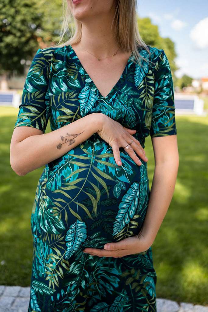 Rochii de maternitate şi alăptare Two Ways LONG milk & love. Rochiile de maternitate şi alăptare Two Ways Long sunt rochii care se adaptează formei corpului în schimbare în timpul sarcinii şi după naştere. Le puteţi purta cu decolteu în faţă - astfel pot fi folosite şi ca rochii de alăptare, sau cu decolteu la spate. După încheierea alăptării, acestea pot fi încă folosite ca rochii "obişnuite". Rochiile lungi Two Ways Long pot fi stilizate pentru diferite ocazii - sunt potrivite în special pentru evenimente mai mari în familie, de exemplu, ca rochii de botez. Vor arăta minunat şi într-un stil casual cu tenişi sau balerini. Rochii lungi elegante de maternitate din viscoză uşoară cu un frumos imprimeu tropical. Rochiile sunt cusute dintr-un material respirabil de cea mai înaltă calitate, care a trecut prin teste stricte Oeko-Tex Standard 100. Datorită lor, hainele sunt moi şi plăcute la atingere pentru mamă şi copil. Când alegeţi mărimea rochiilor de maternitate şi alăptare Two Ways Long, ghidaţi-vă după mărimea pe care o purtaţi în prezent. Dacă ezitaţi între două mărimi - alegeţi-o pe cea mai mică. Tabelul de mărimi este ultima fotografie. Compoziţie: 92% viscoză, 8% elastan.