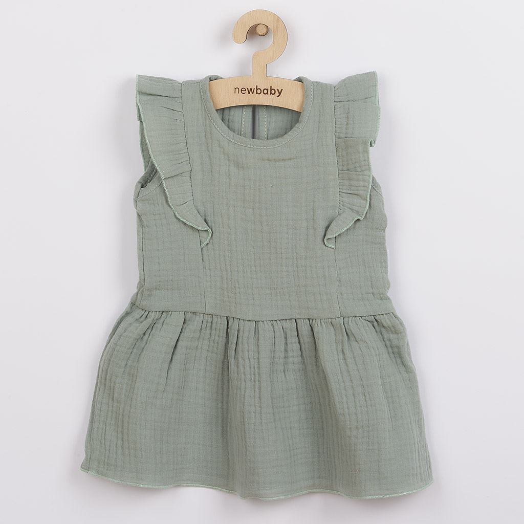 Rochiţe de bebeluşi din muselină la modă ale mărcii cehe New Baby Summer Nature Collection pentru toate micuţele cochete. Rochiţele sunt fără mâneci cu volane şi sunt cusute în forma literei A. Partea superioară este decorată cu un volan drăgălaş iar partea de jos are o fustă frumos plisată. închiderea la spate cu un buton uşurează îmbrăcarea. Rochiţele au un material foarte plăcut, moale şi de calitate, potrivit pentru bebeluşi. Sunt uşoare şi foarte confortabile de purtat. Pentru New Baby, satisfacţia clientului este foarte importantă, tocmai de aceea vă oferim rochiţele noastre de vară de înaltă calitate din muselină. Compoziţie: 100% bumbac.
