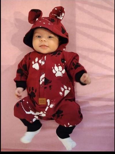 Salopetă ingenioasă pentru bebeluşi din bumbac, marca cehă New Baby Paw. Salopeta este imprimată integral cu un model pentru copii. Este făcută din material de bumbac de calitate, cu elastan şi captuseala din bumbac. Materialul este neted şi plăcut la atingere. închiderea practică cu capse pe toată lungimea facilitează îmbrăcarea şi schimbarea. Salopeta are o glugă practică cu urechi, mansete elastice lărgi pe mâini şi picioare, iar întreaga parte interioară este căptuşită cu bumbac, ceea ce creşte confortul purtării. Bebeluşul se va simţi foarte confortabil şi plăcut în salopetă. Compoziţie: 95% bumbac, 5% elastan, căptuşeală - 95% bumbac, 5% elastan. Potrivit pentru primăvară şi toamnă.