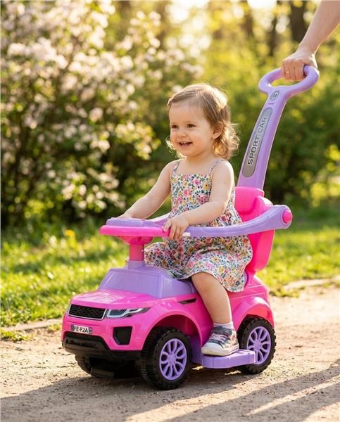 Super vehicul 3în1 Baby Mix în culori vesele, este fabricat din material plastic de calitate, este o jucărie minunată şi sigură. Forma jucăriei ajută la dezvoltarea abilităţilor motorii ale copilului în perioada în care învaţă să meargă. Vehiculul oferă multe funcţii - este echipat cu bare inferioare pentru picioruşe, care pot fi demontate, cu suport şi cu protecţii laterale de siguranţă. Datorită imitaţiei elementelor de conducere, jucăria este şi mai atractivă. Pe ghidon are 3 butoane cu aproximativ 10 melodii şi o sirenă. Sub scaun are un loc pentru jucării. Vehiculul este destinat atât pentru cei mai mici copii care pot sta jos, cât şi pentru copii care au învăţat deja să meargă. Bateriile nu sunt incluse.