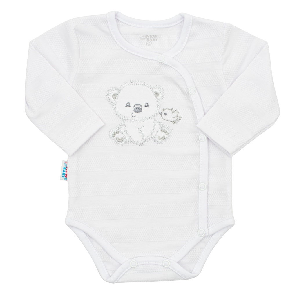 Set drăguţ pentru bebeluşi, cu 4 piese, cu mărci cehă New Baby Sweet Bear pentru bebeluşi. Acest set este fabricat dintr-un material deosebit de plăcut, moale şi de calitate, potrivit pentru bebeluşi, nu doar pentru maternitate. Conţine un body complet detaşabil cu mânecă lungă, pantaloni scurţi, o jachetă şi o căciuliţă. Body-ul complet detaşabil este decorat cu o imagine cusută a unui ursuleţ şi a unei păsări. Pantalonii scurţi sunt decoraţi cu un drăguţ desen de ursuleţ şi pasăre.închiderea cu nasturi pe bretele şi între picioare facilitează îmbrăcarea şi schimbarea scutecului. Jacheta este monocromă cu o frumoasă garnitură în jurul mâinilor. închiderea este cu nasturi de-a lungul întregii lungimi. Căciuliţa are o formă frumoasă pentru urechi şi este legată cu şnururi, astfel încât se ţine bine pe capul bebeluşului şi nu cade. Este foarte practică şi nu apasă pe capul bebeluşului. întregul set are un design nou şi neobişnuit cu un model de ţesătură atractiv. în acest set, care este cusut cu precizie şi calitate, bebeluşul se va simţi foarte confortabil. A fost conceput cu în vedere nevoile bebeluşului şi este potrivit şi ca un cadou de drăguţ. Setul este într-o cutie ecologică practică. Compoziţie: 100% bumbac.