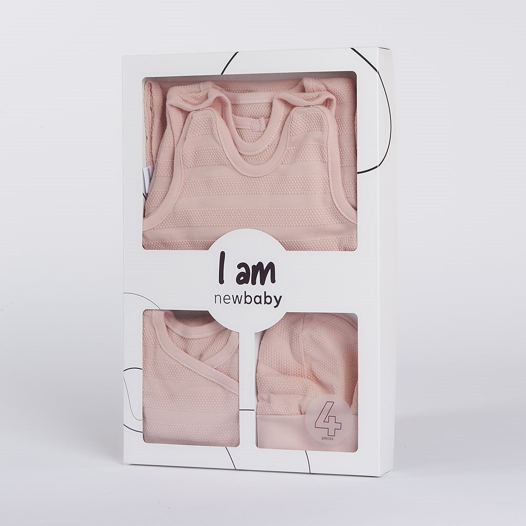Un set adorabil pentru bebeluşi de 4 piese a marcii cehă New Baby I AM pentru bebeluşi. Setul este fabricat dintr-un material foarte plăcut, moale şi de calitate, potrivit pentru bebeluşi şi este potrivit nu numai pentru maternitate. Conţine un body cu deschidere completă şi mâneci lungi, pantaloni cu bretelă, un palton şi o pălărie. Body-ul are o prindere laterală pe toată lungimea şi între picioare cu capse. Pantalonii cu bretelă au deschideri cu capse pe bretele şi între picioare, ceea ce facilitează îmbrăcarea şi schimbarea pampersului. Paltonul are prinderi cu capse pe toată lungimea. Pălăria cu borul mai lat stă bine pe capul copilului şi nu cădea. Este foarte practică şi nu apasă pe capul bebeluşului. întregul set are un design nou, neobişnuit, cu un model de material atrăgător. Setul este conceput ţinând cont de nevoile bebeluşilor şi este potrivit şi ca un cadou drăguţ. Setul vine într-o cutie ecologică practică. Compoziţie: 100% bumbac.