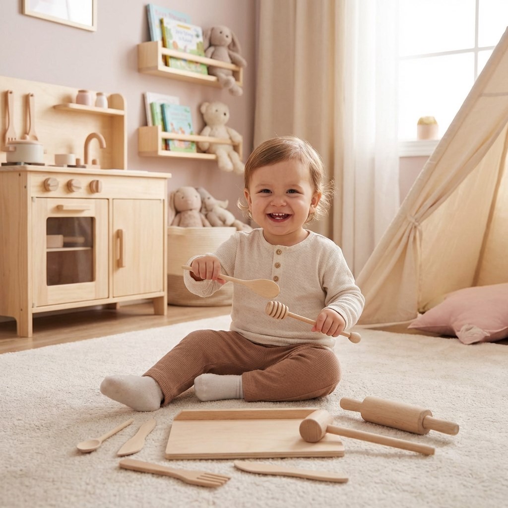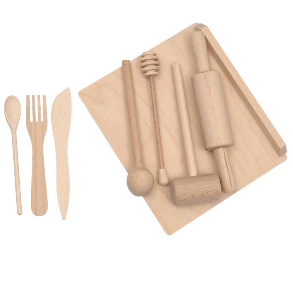 Copiii se vor îndrăgosti de gătitul „fără foc” – pot întinde aluat, plastelină, amesteca miere sau prepara bunătăți cu unt. Fiecare piesă din set este concepută pentru a susține jocul creativ, a dezvolta motricitatea fină și a aduce bucurie din a juca rolul de bucătar sau bucătăreasă.