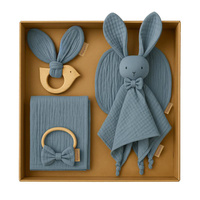 Această excepțională cutie cadou de la marca New Baby este alegerea ideală pentru baby shower, întâmpinarea nou-născutului sau orice altă ocazie în care doriți să oferiți ceva frumos, delicat și complet sigur. Toate elementele setului sunt fabricate din cele mai calitative 100% bumbac organic mușelin și lemn natural de fag, au certificate și respectă standardele europene de siguranță.