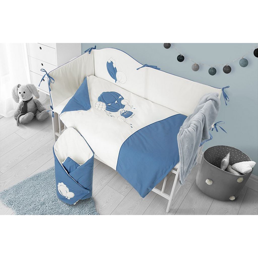 Frumoasă set de pat din bumbac pentru copii în 3 piese, Belisima Ballons. Setul este decorat cu baloane. Este fabricat dintr-un material moale şi plăcut la atingere. Include o faţă de pernă de aproximativ 40x60 cm, o faţă de plapumă de aproximativ 100x135 cm şi un bord de aproximativ 180 cm. Materialul este 100% bumbac.