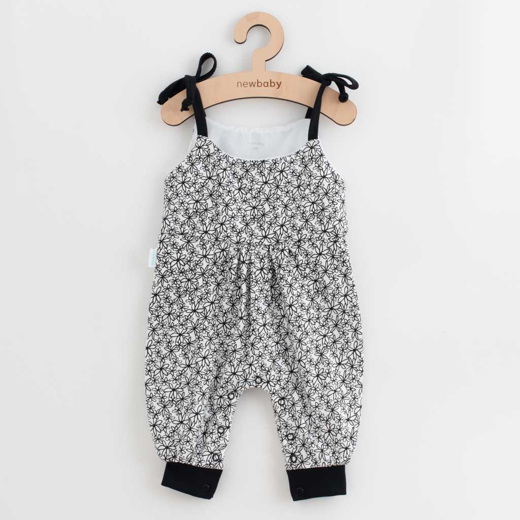 Set cochilă vară 2 piese frumoasă a mărcii cehe New Baby Be Happy pentru bebeluşi. Acest set comfortabil este fabricat dintr-un material foarte plăcut, moale şi de calitate, potrivit pentru bebeluşi. Include un tricou şi pantaloni estivi de tip salopetă. Tricoul din bumbac cu mâneci scurte este decorat cu un imprimeu cu textul "Be Happy". Se îmbracă simplu, peste cap. Se închide cu butoane pe bretele. Pantalonii de vară cu bretele reglabile sunt imprimaţi integral cu flori. Pantalonii au la partea inferioară o bumbac mai larg. în acest set precis şi de calitate, bebeluşul se va simţi foarte confortabil. Compoziţie: 100% bumbac.