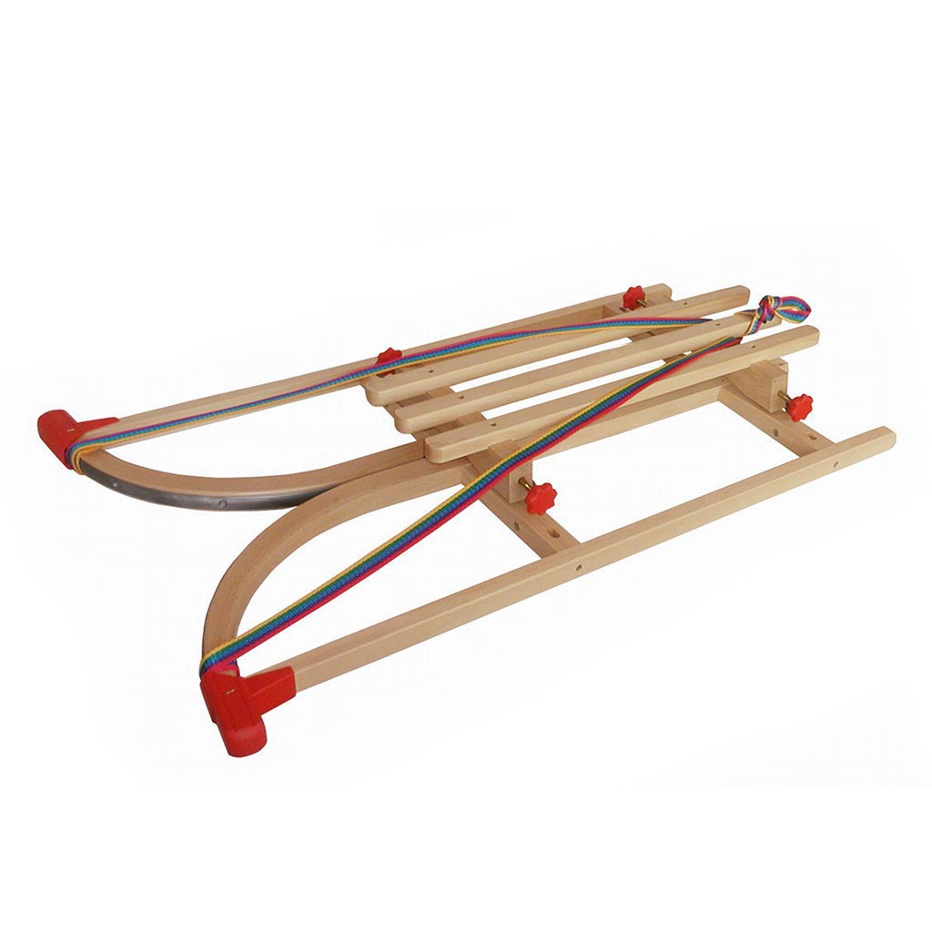 Sănii din lemn solide şi rezistente, cu o construcţie întărită, sunt fabricate din lemn de fag şi acoperite cu un lac transparent şi incolor, datorită căruia lemnul îşi păstrează culoarea şi structura constantă. Datorită sistemului patentat de pliere rapidă şi sigură, săniile ocupă foarte puţin spaţiu când sunt pliate (doar 9 cm înălţime). Giuvaerele din oţel inoxidabil cresc rezistenţa lor şi confortul în timpul călătoriei. Partea din faţă a săniilor este protejată de capace de protecţie speciale. Sunt echipate cu o frânghie de remorcare. Se caracterizează prin durabilitate ridicată şi rezistenţă la deteriorare.