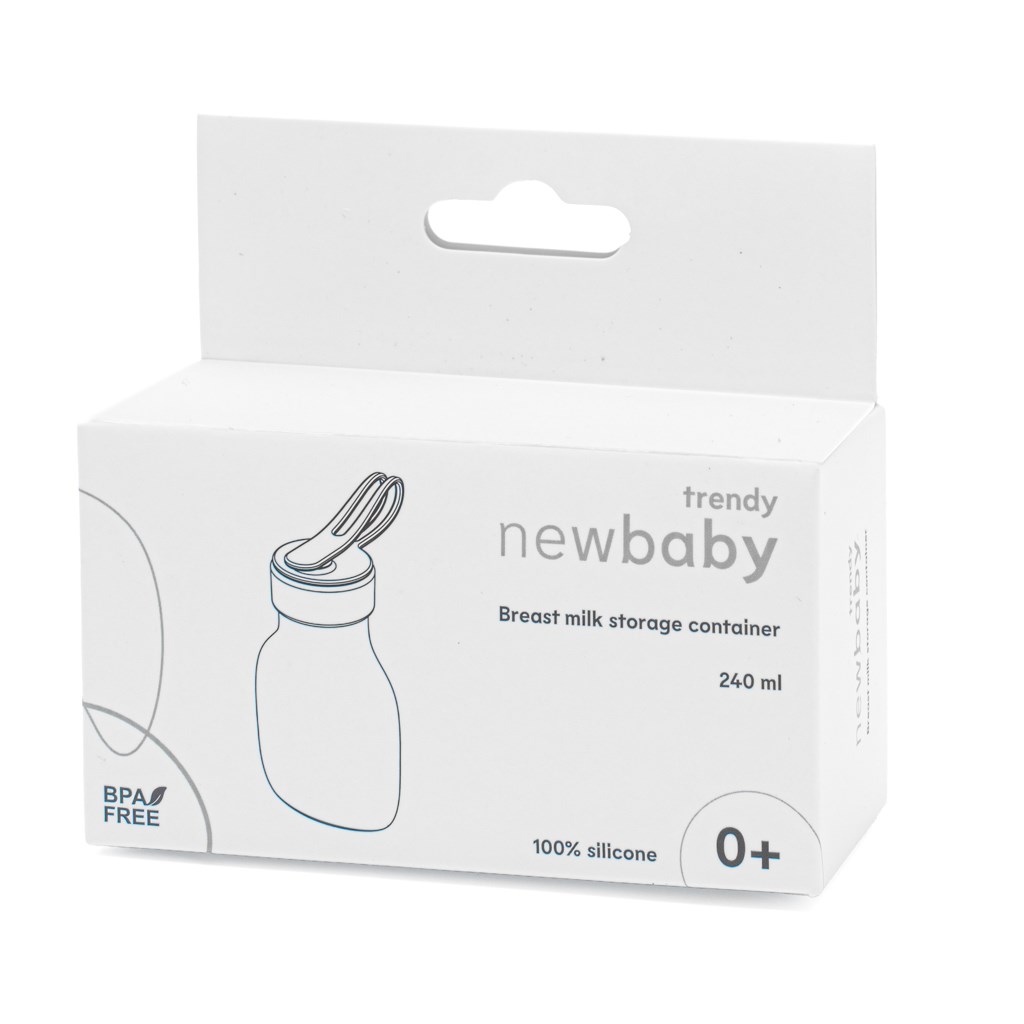 Recipientul din silicon pentru laptele matern marca New Baby din gama Trendy combină un design minimalist modern cu utilizarea practică pentru nevoile zilnice ale mamelor.