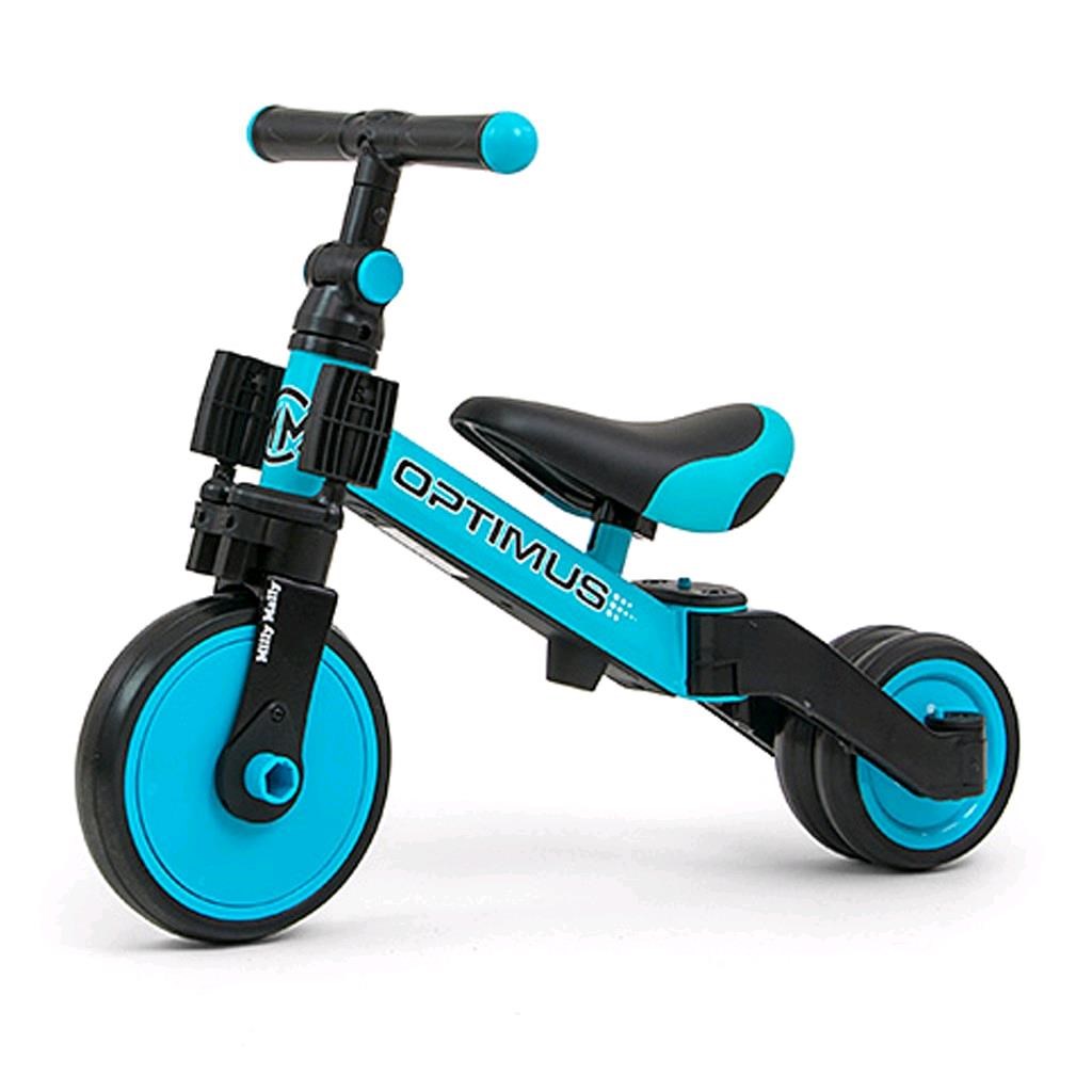 Tricicleta universală de căţărare Milly Mally 3 în 1 Optimus a fost proiectată pentru a oferi cel mai bun lucru pe care îl puteţi oferi micului dvs. pilot. Datorită construcţiei sale stabile, oferă nivelul maxim de siguranţă copilului şi îi uşurează dobândirea de noi abilităţi. Cea mai mare avantaj a acestei triciclete este variabilitatea sa. Odată ce copilul şi-a dobândit bazele condusului, putem adăuga pedale sau putem să o transformăm într-un vehicul clasic cu două ţăţi într-o clipă. Roţile din spumă absorb şocurile, oferă o bună aderenţă, asigură confortul în timpul condusului şi nu vor obosi micul dvs. pilot. Baza suficient de mare a roţilor oferă o stabilitate extraordinară, siguranţă în timpul utilizării acasă sau în aer liber. Opritorul de direcţie împiedică răsucirea ghidonului.